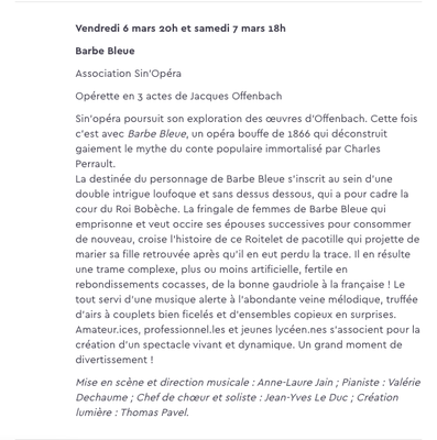 Pour rejoindre la troupe de Sin'Opéra (2027-2028), contactez Isabelle Rivaille